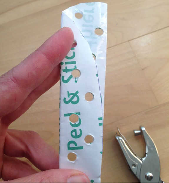 Perfore agujeros a través de todas las cuatro capas de la plantilla doblada con el sacador de agujero, comenzando en un extremo y hacia el otro sobre una 1/2" a la vez.