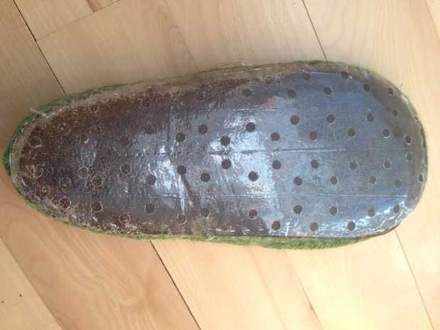 Presione dentro de la zapatilla con la mano, o paso, para alisar hacia fuera y asegúrese de que está bien pegado a la suela.