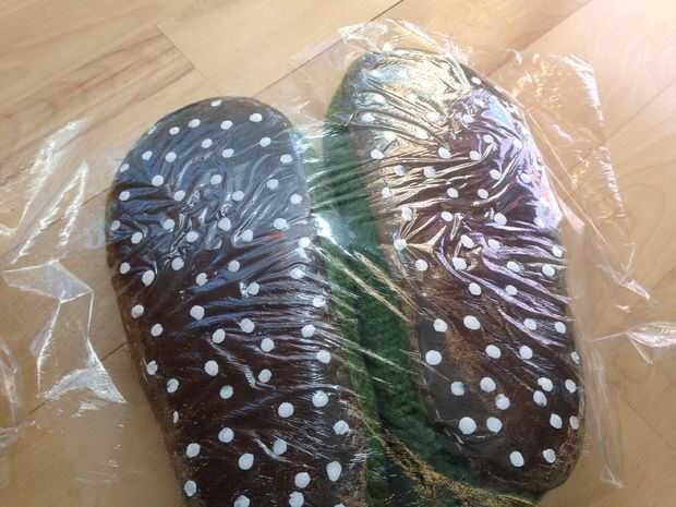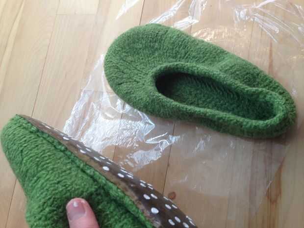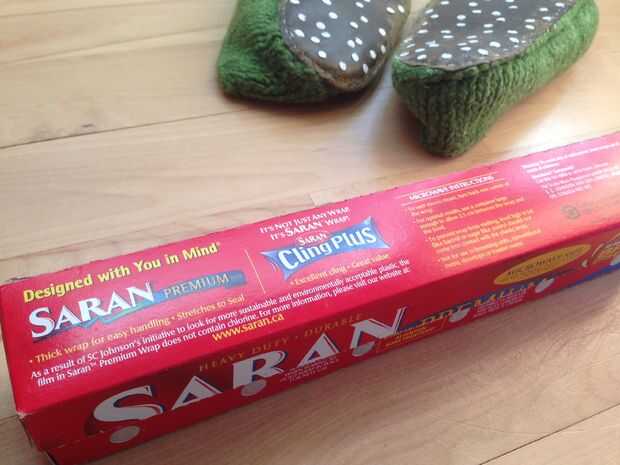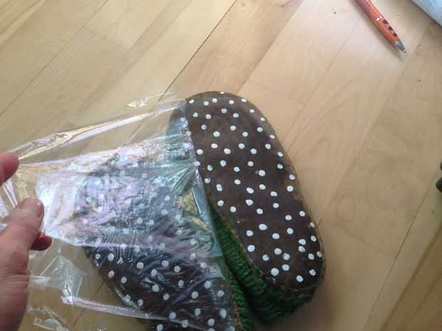 Utilizando algún tipo de envoltura de plástico, que no se pega a Sugru, colocar una pieza y el lugar del recién Sugrued pantuflas, suela hacia abajo en él.