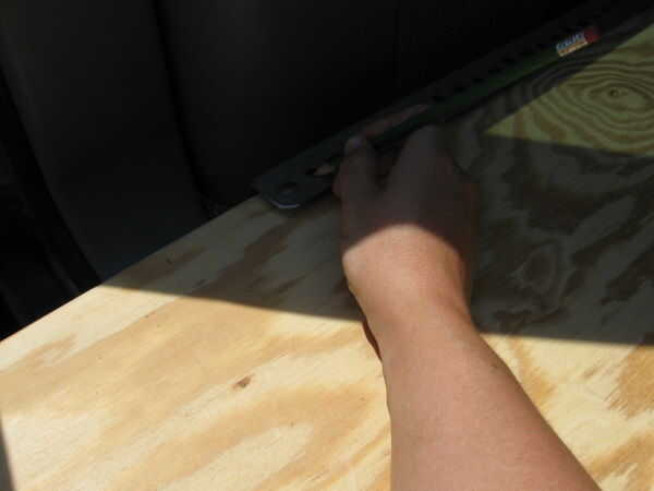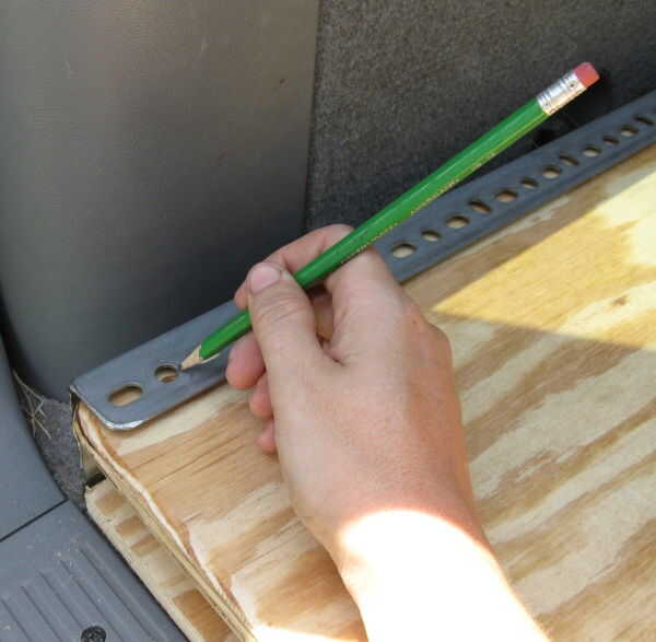 Deslice el tablero hacia fuera a algunas longitudes convenientes y marque el tablero superior bajo el primer agujero circular para cada uno.