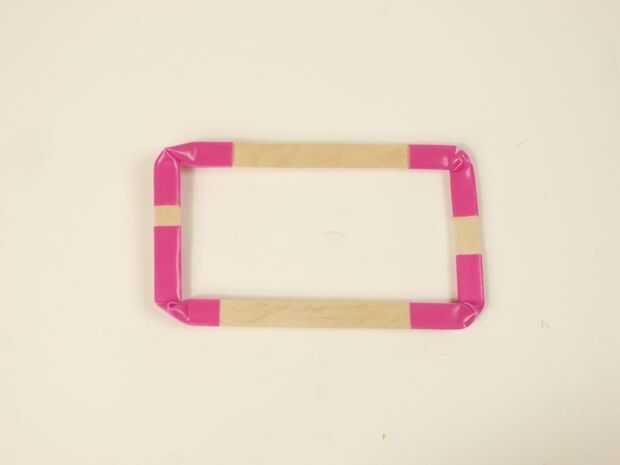 Formar un rectángulo. La conexión pasada puede ser complicada. Utilice el dedo para doblar la paja en la esquina, luego inserte el último palillo.