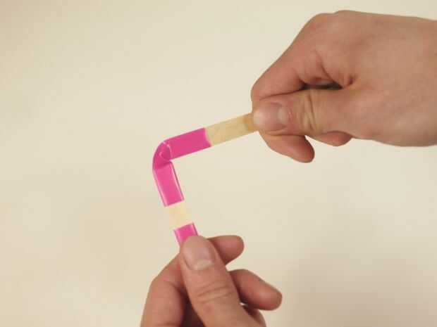 Utilice ambas manos para doblar las esquinas manteniendo los palitos planos.