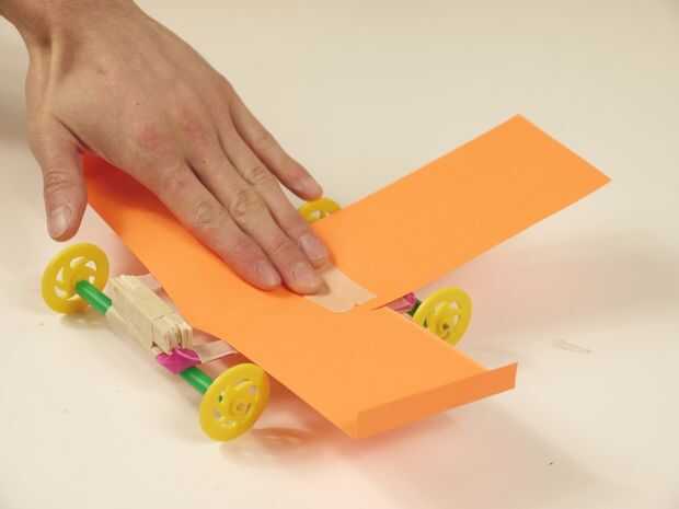 Doblar la cola hacia arriba o abajo cambiará el ángulo en el que el coche se desliza por el aire.