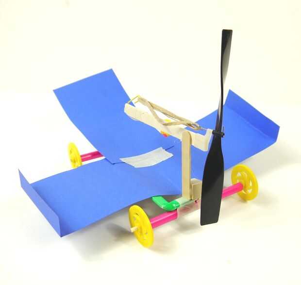 Esta idea de avanzada utiliza el mismo motor de goma como el proyecto de helicóptero de goma.