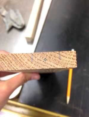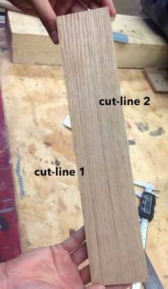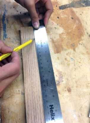 Repita este paso para la pieza de madera arriba. Después de dibujar el corte de línea de 1/2" y 1.25" línea de corte Asegúrese de que la pieza superior coincida con la pieza de fondo antes de cortar!