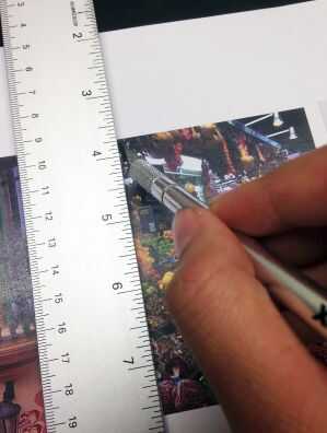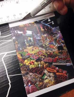 Después de que has reunido su cartulina, es necesario utilizar tijeras / cuchillo/caja de un x-acto cortador para cortar su impreso fotos. Corte a lo largo de los lados izquierdo y derecho de cada foto y asegúrese de dejar aproximadamente una 3/16 ranura de espacio en blanco en la parte superior e inferior. Si no, parte de la foto será falta cuando está dentro del marco debido a la profundidad de los cortes de mortajas.