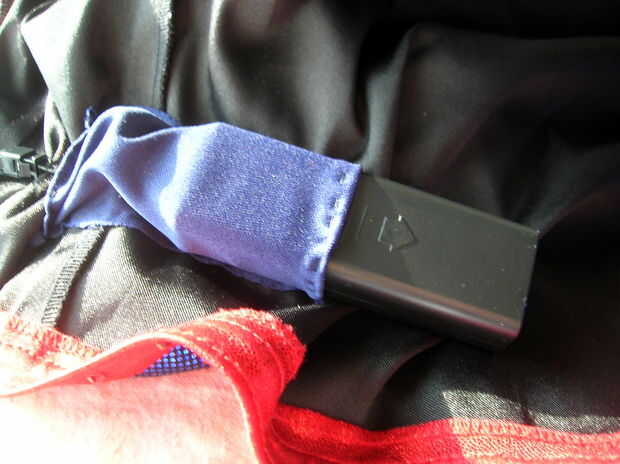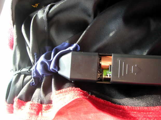 Cortar un rectángulo de tela un poco elástica. Para terminar el borde, puntadas en zigzag alrededor de la tapa exterior, o simplemente los bordes bajo como azote en puntada sobre el paquete de baterías. Deje el extremo de la batería de cable abierto, para que puede crujir a la tela Deslice la batería hacia fuera si usted necesita cambiar las pilas.