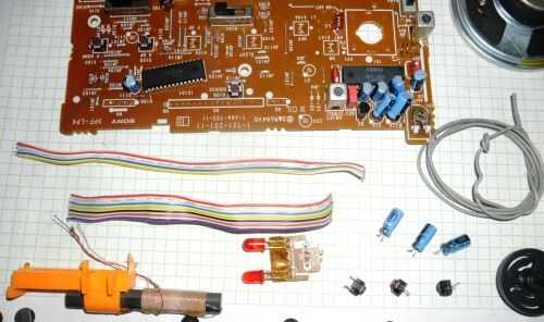 En este tablero particular, hubo 2 indicadores LED, 5 interruptores de botón mini lotes de gorras de electro, 8 o 9 mini diodos (diodos de Schottky - buenos como detectores de radio de AM y también para una matriz de conmutación) por lo que todos ellos se pueden recuperar. los filtros de 455KHz y resonadores de cerámica son una buena puntuación ya que pueden ser partes duras para comprar en muchas tiendas de electrónica. También había algunas longitudes de cable de conexión del arco iris de colores - estos hacen la vida mucho más fácil cuando se instale un nuevo proyecto - un elemento definitivamente "scavengable". Oh y no falsificador el cierre de la batería de 9 voltios...