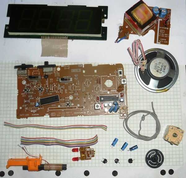 Ahora vamos a ver, hay un altavoz de 8ohm mini y conexión de los cables - definitivamente tienen que - pueden ser tan estimados como 2 º precio de mano de radio reloj ($5,00!) por lo que es su dinero, si se trata de una buena calidad (gran imán, cono de mylar). Luego está la exhibición de LED verde muy grande de 4 dígitos. Es un 'multiplexado', así que usted puede usarlo en otro proyecto, como un medidor de voltios o amperios más tarde.