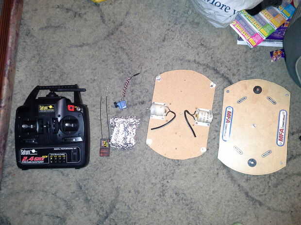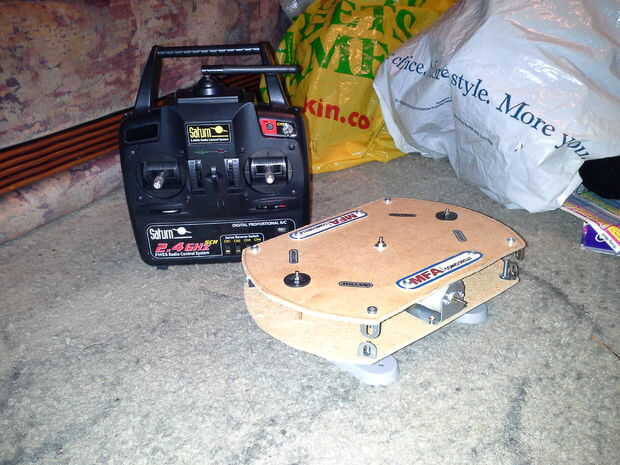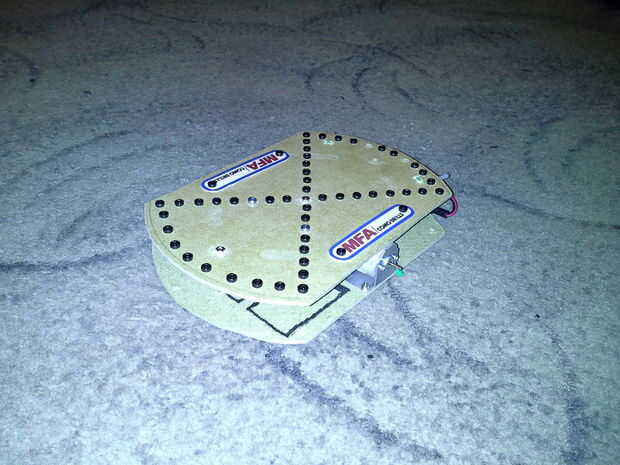 Aquí os la placa base de mi primer robot, llamado fragmento. Es MDF y algunos tornillos de Meccano, pero tienes que empezar por alguna parte!