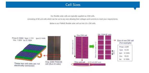 Si nos fijamos en los datos técnicos en su sitio, afirma que cada uno de esos 4 17, paneles de 5 vatios consiste en las células de 68different en serie veces 2 (en paralelo), y que estas células son cortadas. Eso es por supuesto más fáciles decirlo que hacerlo. El panel entero es 0,2 mm de espesor y la mayor parte de este espesor viene del aislamiento plástico. Pero no dispair, después de algunos experimentos encontré una solución "fácil". Pero primero permite comprender mejor cómo se construyen estas células