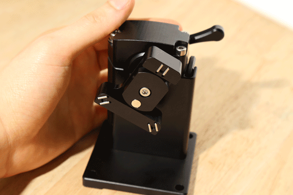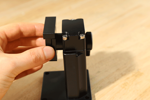 Aviso que la articulación del brazo de la estructura pueda moverse libremente. Puede girar en una dimensión y girar en otro y puede también Deslice hacia arriba y hacia abajo. Esta libertad permite que la cabeza de la construcción para aparearse con la ventana en la bandeja de resina cuando se imprime. Apriete el tornillo de calibración abrazaderas para la articulación y mantiene en movimiento.