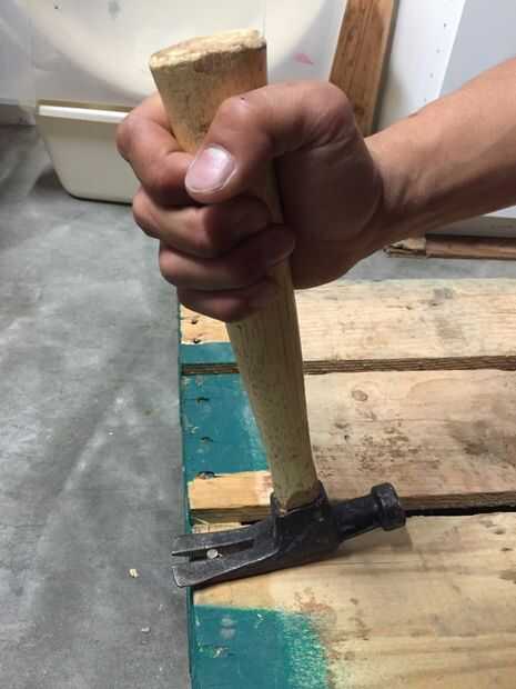 5. al llegar al final puede utilizar la barra del cuervo para aprovechar la madera aparte. Es difícil de hacer en las bahías del centro de la plataforma sin agrietar la madera. (Este paso es mostrar en el video)
