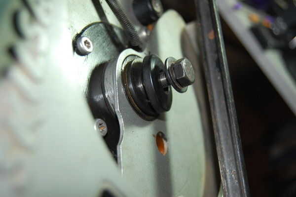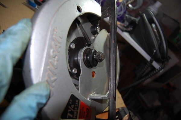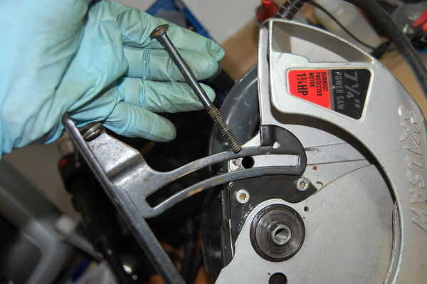 Tenga en cuenta la posición de la placa base y el protector de la hoja. Hay una orientación bien y el mal de estas piezas cuando atornille el tope de goma.
