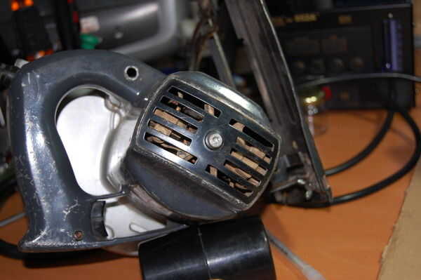 Voltee el motor y quite el tornillo que sostiene en la rejilla que cubre el motor. Poner el tornillo a un lado.