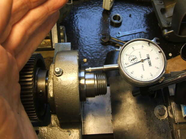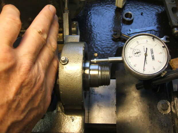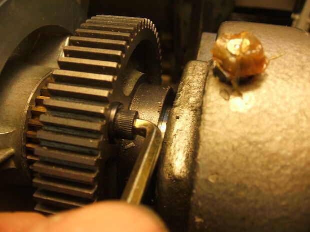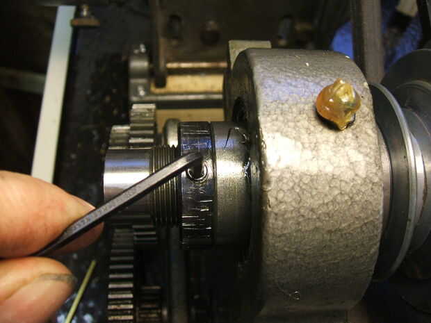 De hecho, pasé por el bloqueo-anillo-apretar proceso (siguió ejecutando el torno) unas cuantas veces antes de que el juego final se convirtió en cero. No sustituyo el mandril de madera para detener el eje de rotación, pero encajado un pedazo de aluminio entre el toro rueda y bastidor de cabezal - las fuerzas involucradas en el anillo de fijación de apriete no son muy grandes.