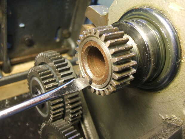 Retire el engranaje de 25 dientes desenroscando el tornillo prisionero y desenroscar la rueda de engranaje de husillo.