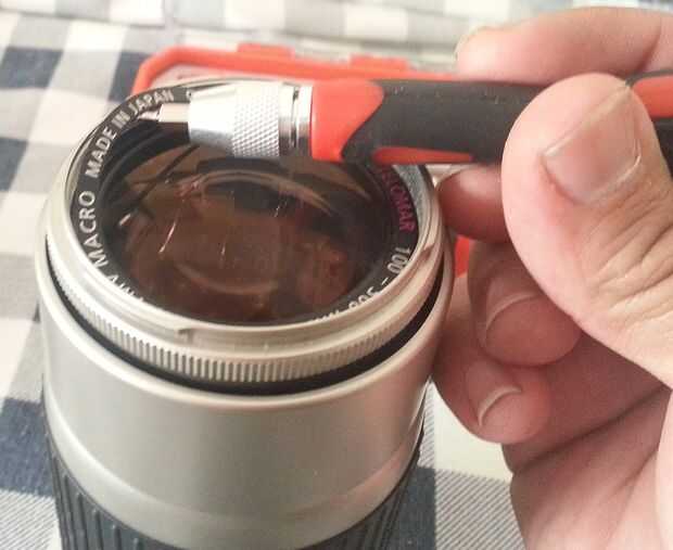 Con la punta de un destornillador retire suavemente el anillo de plástico que tengan el nombre de la lente.