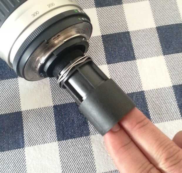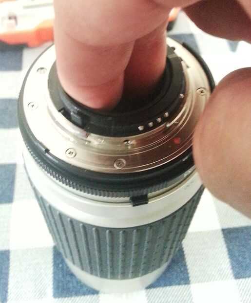 En la parte posterior de la lente colocar los dedos dentro sin tocar en la lente y presionar un poco. Gire hacia la izquierda (ver foto n º 2).
