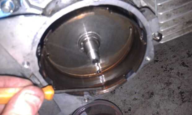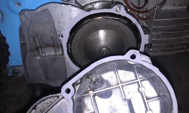 limpie ambas superficies de contacto donde va la Junta. Si tienes vieja porquería Junta allí, raspe cuidadosamente apagado. Reemplace su Junta embrague si el está destrozado. Me gusta poner alguna pasta de juntas en ambas superficies antes de que junté todo nuevo. "Yamabond" es algo buena, pero hay otros tipos que también son buenos. No enloquecer con él. Cubrir sólo ligeramente ambas caras...