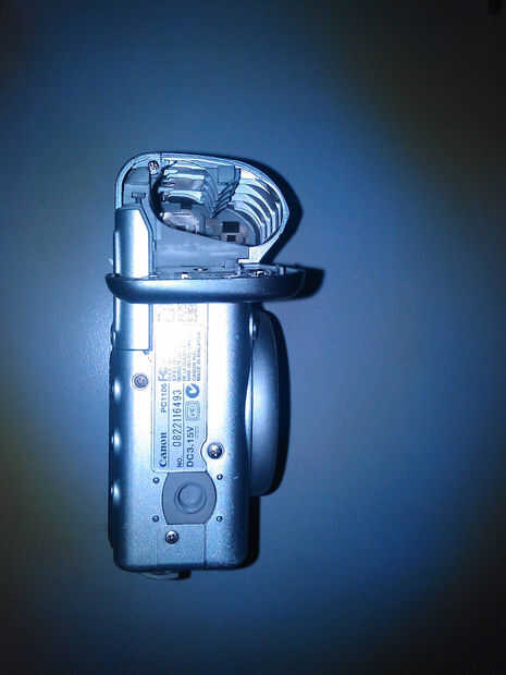 El primer paso es revisar el objeto de buscar tornillos, obtener imágenes de cada lado y asegúrese de no perderse ninguna, en este caso, uno está debajo de la puerta de la batería, y la foto con la puerta abierta está utilizando flash, para ser visto correctamente.