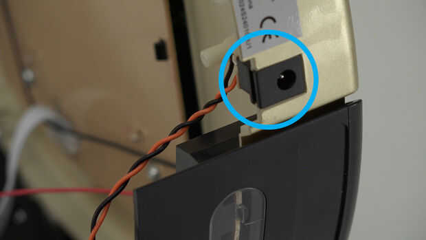 Voltee el bOb detrás para que puedas ver la pantalla. Levante la tapa hasta el tablero principal de revelar bObsweep y separar la entrada de energía de la cubierta. Lo agarre y deslícela hacia fuera.