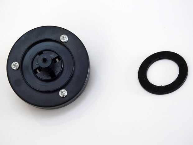 Habrá una arandela ancha negra que se ajusta en la sección acanalada de la rueda.
