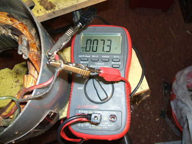 Cuando se cablean en rotación hacia adelante la resistencia entre los alambres vivos y neutrales es 4,2 ohmios (Nota - inmediatamente la CA está conectada al motor, la resistencia aumentaría instantáneamente, razón por la cual el fusible no se funde).
