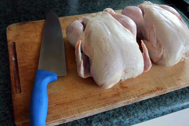 Comencé a comprar pollos enteros y desmontarlos mismo para ahorrar dinero. Las rebanadas más un carnicero hace por usted, más dinero que usted paga. No sólo consigues más carne por tu dinero, pero puede utilizar los huesos valiosos para hacer su propio caldo de pollo. Así que aquí está Cómo desarmar un pollo entero, perfectamente, en unos 5 minutos.