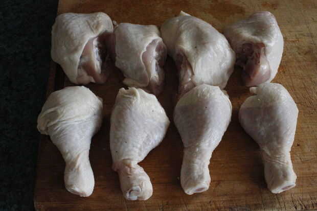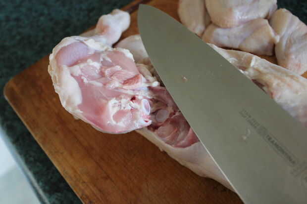Puede separar el muslo y muslo por corte firmemente a través de la articulación entre el muslo y el muslo.