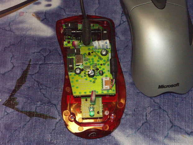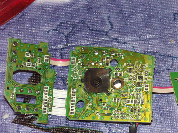 Los dos ratones, a pesar de ser exterior "idéntico", tenían significativamente diferentes componentes internos. En las fotos aquí tenía tres circuitos y algunos tornillos adicionales para eliminar. El otro (mayores?) ratón sólo tenían dos tableros y tenía su funcionamiento interno enteramente por ranuras y lengüetas de plástico.