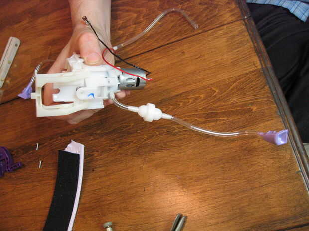 La bomba funciona a 6V (4 pilas AA). Funcionará siempre y cuando el circuito esta cerrado (tenga en cuenta que yo no he comprobado, así que no sé cómo rápidamente el motor se quemará). Es posible conducir de una de las líneas de 5V de un Arduino; Si no, un simple regulador elevador debe hacer el truco. Todavía no he medido la velocidad de flujo, pero planeo hacerlo a plena potencia y en varios ciclos de trabajo PWM; ver este espacio para los detalles!
