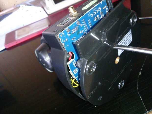 6. Afloje el tornillo de la antena y luego empuje hacia abajo a través del orificio de la caja.