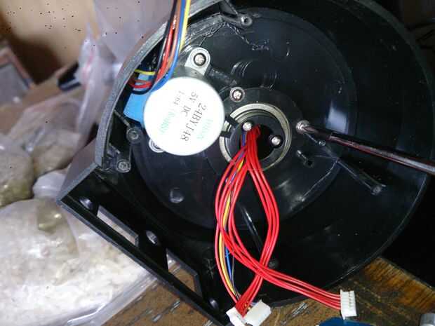 10. En la parte posterior del motor encontrará un limitador, tire hacia afuera. Los cables se agrupan con los cables del altavoz.