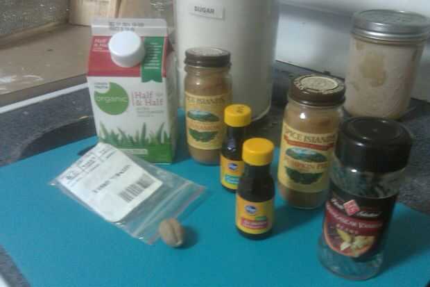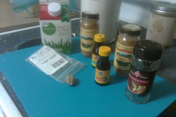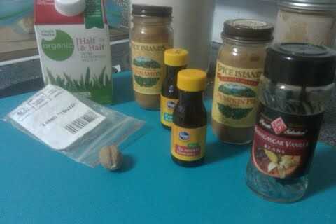 Me abrió mi contenedor de mitad y mitad, agrega 3-4 raspaduras de nuez moscada rallada, no hay más que una pizca de especia de calabaza y una cucharadita colmada de puro Extracto de almendra. Tenía algo de espacio en la izquierda, allí así añadí 2 cucharadas de azúcar, shook up y lo llevó a trabajar conmigo. Estoy muy satisfecho con el resultado. Puedo cambiar mis opciones de crema de café y mejorar el control de mis niveles de azúcar, y hay sólo unos pocos ingredientes!