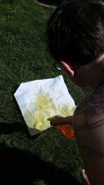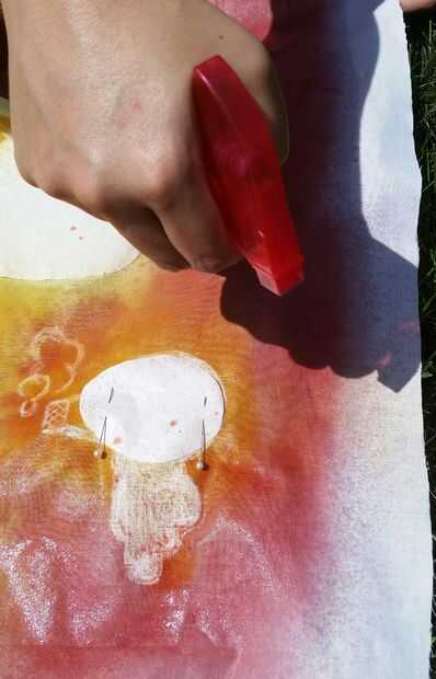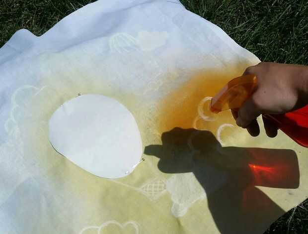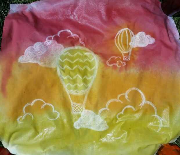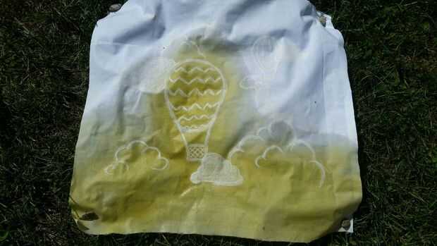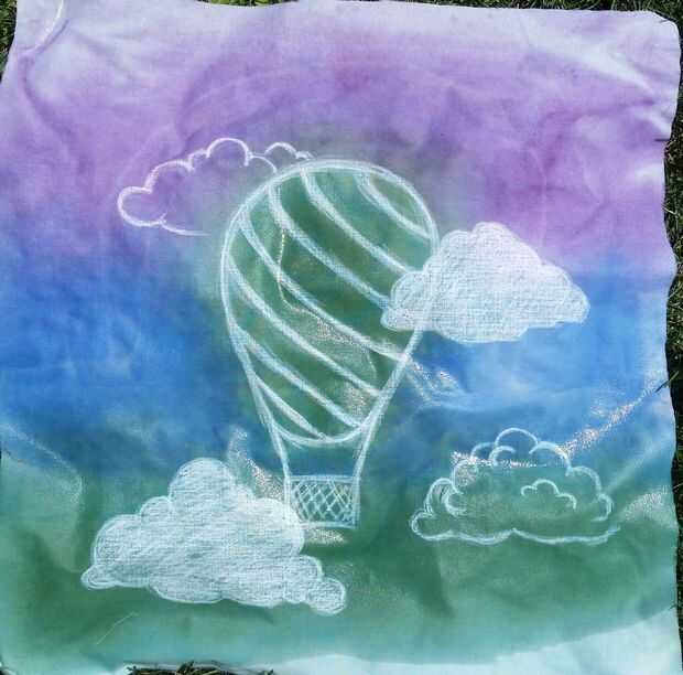 Finalmente el pin y paso atrás para admirar su trabajo práctico! Deje que se seque para asegurarse de que estés contento con tus colores. En mi caso pensé que mi verde era demasiado ligera originalmente había añadido tinte un poco más a mi botella y roció mi globo otra vez en la gama cercana por lo que no salpicar demasiado.