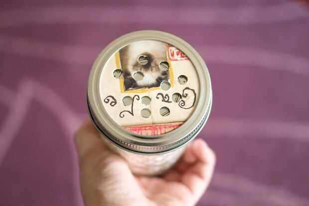 Si usas un tarro de masón como yo, sólo puede insertar la tapa del metal bajo la cartulina uno lo guarde. :)