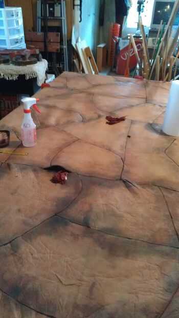 Encontré que por rociar las piezas de espuma con agua y realmente saturando el material, la pintura se "arrastran" a lo largo y difuso de la ayuda de cualquier cepillo de marcas, lo que es realmente mirada buena y real.