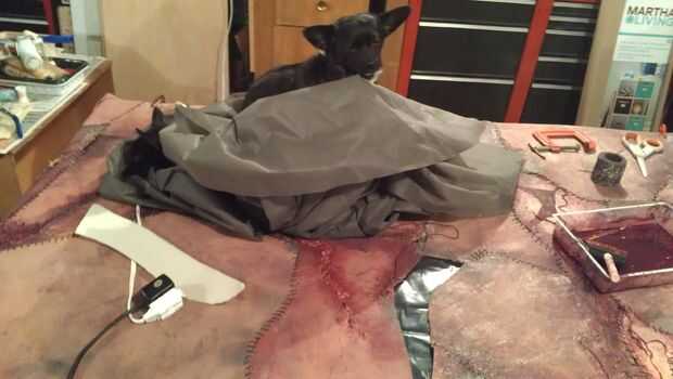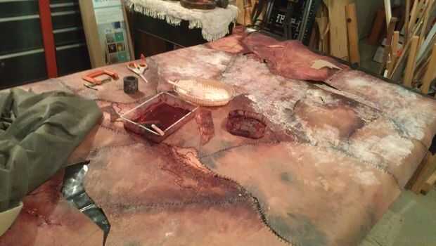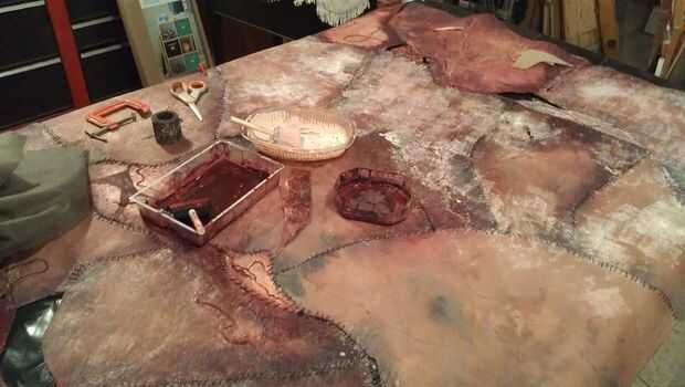 Una vez más, esto no es Martha así que descuidado con eso látex. Usted quiere asegurarse de cubrir cada parte de la superficie de su material, pero no te preocupes algunos puntos ser más delgado o más grueso que los demás... esto añade a la idea de que está usando carne real de su disfraz de mesa y ayudar el hecho de que es tela.