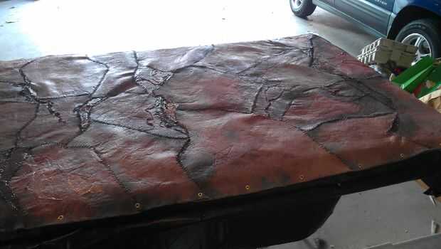PASO opcional: ojales. Me puse estos porque envuelve los bordes alrededor de la mesa y utiliza cable para zig-zag, amarre el material. Esto mantiene plana como ligeramente estirado lo... guardó también de deslizamiento y desplazamiento.