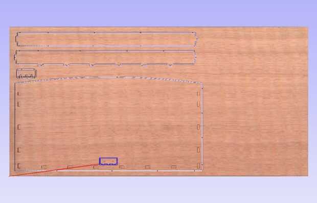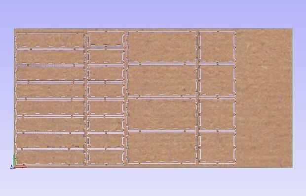 Ahora simplemente llamo a las partes en el software de diseño 2D o 3D de elección - diseñé esto directamente en el programa de la CAM (Vcarve), pero una herramienta CAD dimensional conducida es una mejor opción, como los tamaños de embutir tienen que estar bien afinado para que coincida con el grosor de la madera contrachapada exacta que puede variar y partes pueden compartir compensaciones definidas, así que hay menos probabilidades de ser un error en una ubicación común de mortaja/espiga.