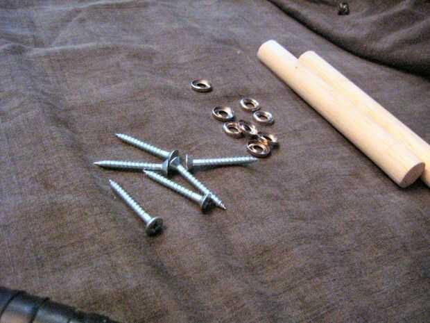 También necesitarás algunos hardware random - dos o tres tornillos para cada extremo. Utilicé tornillos para madera de 8 mm x 1.5" pero esto puede variar dependiendo de cuánto mecha que va a utilizar. Adivinar o esperar a que haldway a través de la construcción antes de comprar. No te preocupes, ya te contare cuando :-) También necesitarás algunas arandelas para reducir la presión en la mecha y hacerla ver más agradable - pedir 'arandelas de Copa' y obtendrá algunos como estos. Los tornillos y arandelas juntas me costo 85p.