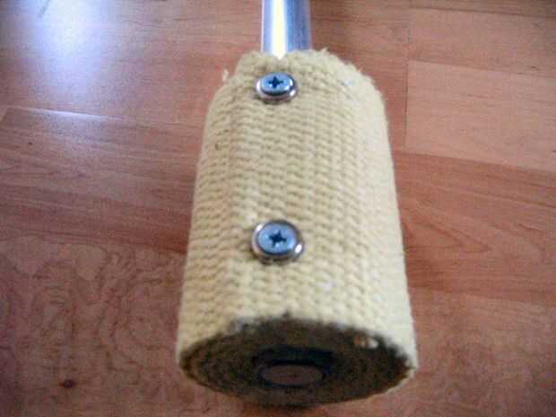 Una vez que mirar hacia abajo el tubo y ver el final de los tornillos que se pega en el tubo, acaba de volver hacia fuera un poco, inserte el pasador y apriete los tornillos hasta que no vayan más lejos en la espiga. Si desea mayor seguridad se puede repetir este proceso en el otro lado de la mecha, pero no se molestó. Recuerde revisar que sus tornillos estén apretados antes de realizar! Usted no querría una mecha para volar y golpear a alguien.