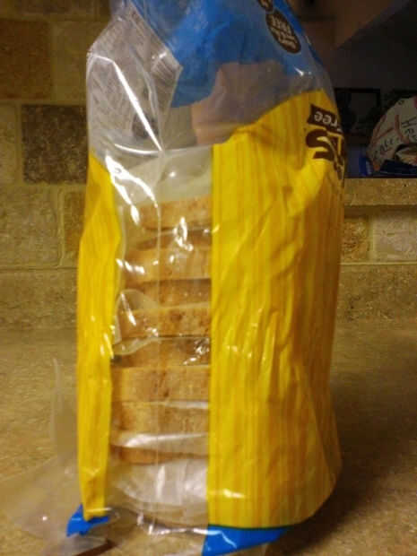 Una vez todos los sliices en la bolsa, tienes que intentar unir el pan (no es difícil hacerlo) y voltee la bolsa por lo que puede torcer lazo cierra.
