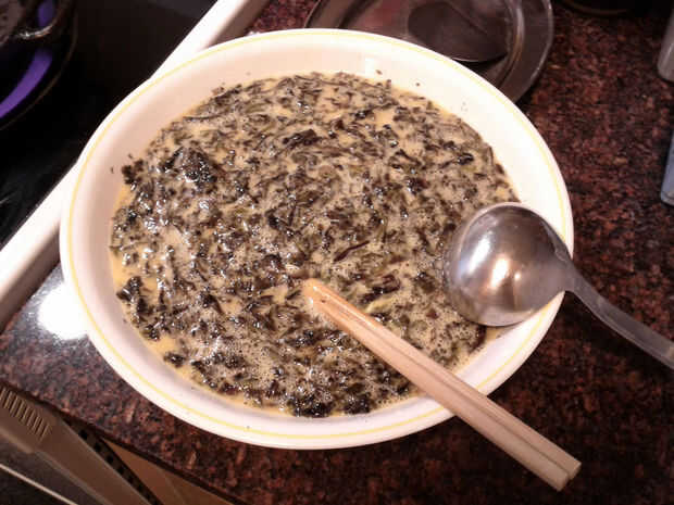 Alga marina se expande. Puede dejarla reposar un rato (5 minutos) lo dejó hacer su cosa.