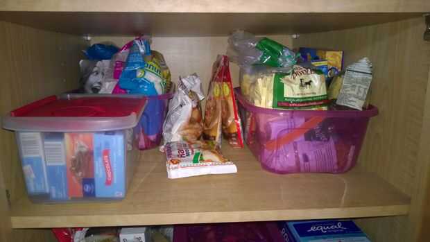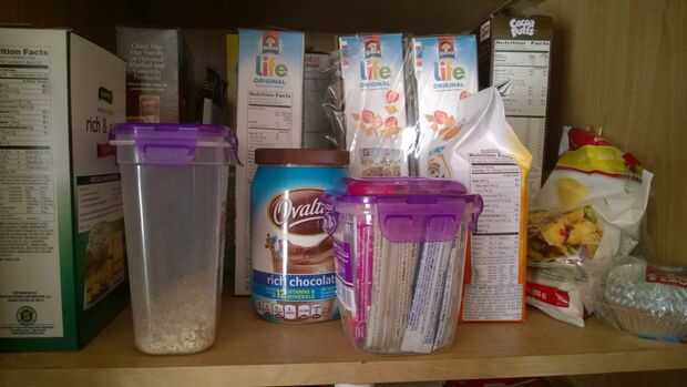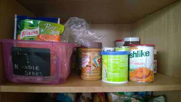 Sólo usted sabe qué tipo de organización va a tener sentido para su familia. Esto es cómo configurar mi despensa para mis necesidades diarias de las familias. El estante superior es caja grande elementos porque es un poco más alto que los otros estantes. El mediados dos estantes son para almuerzo, cena y artículos de necesidades básicas. El estante inferior es desbordamiento y aperitivos. Como mi vida familiar cambia y los niños van creciendo, o más chicos vienen a lo largo, así cambiará mi despensa. He de enterarme de que tengo que empezar a mantener mi hogar organizado y en control a tener mas tiempo para hacer otras cosas en la vida!