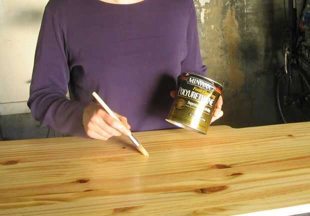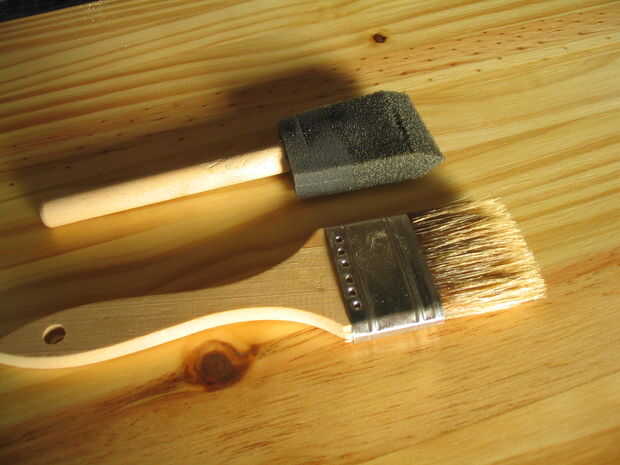 Fijar los estantes en soportes de uñas al seco; Esto le permite a poly ambos lados de una sola vez. Prefiero cepillos de espuma, pero la cerda barata también los hará si los elimina el desprendimiento de cerdas. Deseche el cepillo después de usarlo.