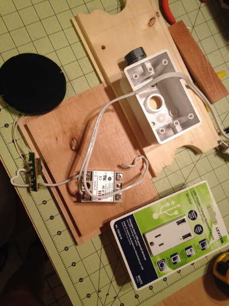 Siguiente le neet a su salida de combo que irá dentro de la caja con un enchufe que puede ir desde el reloj al enchufe de la fuente. La toma de corriente dentro de la caja suministrará el Arduino y la almohada. Con el cordón de la almohadilla de la calefacción, usted quiere la parte de tierra de tu cable que va directamente a la almohadilla y el cable positivo que va en un lado de su repetidor. Luego conectas un cable que va desde el otro lado del relé a lo positivo sobre su almohada.