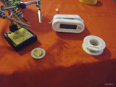 El nombre más o menos describe este paso... Pero primero Haz el contacto con las conexiones para asegurar usted tiene el derecho de polaridad, y para ello debe configurar la alarma se apague como un minuto después de la hora actual. Luego de la soldadura. Ya que yo no podía de la soldadura de acero muy bien (falta de flujo), yo bien atornillados al respecto. Esto no se recomienda.