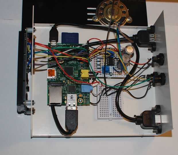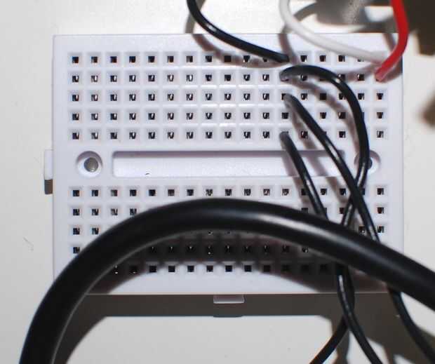 Los cables negros de los tres interruptores de panel posterior van en la misma columna como el cable negro del amplificador. En la foto de la protoboard se puede ver hay una posición abierta en esta columna. El cable negro del interruptor de la alarma va aquí.